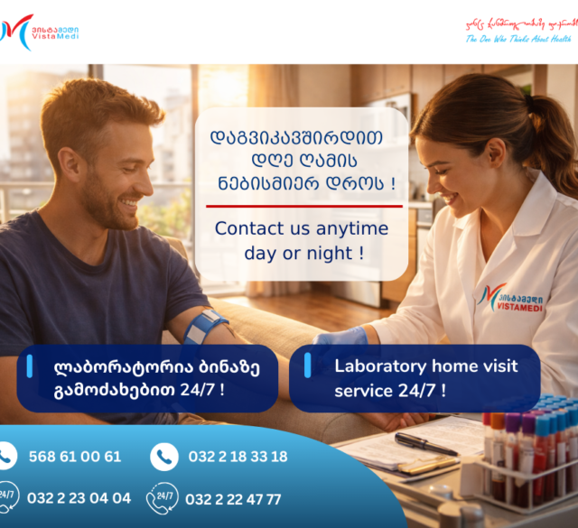 🔬”Vistamedi”offers laboratory on call service 24/7❗️ 👉You can use our on call service anytime of the day or night‼ 🚗The service is available in Tbilisi as well as outside the city limits ❗️ ✅For more information contact us: ☎2 23 04 04; 2 18 33 18; 2 22 47 77; 📞568 6...